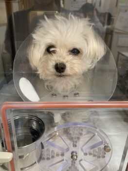 お預かり後、酸素室内で呼吸は落ち着いており、