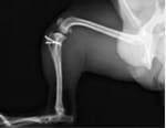 - 同居犬がおり、安静の維持が難しいため、術後2週間入院。術後4週間で屋内での運動制限を徐々に解除、8週間でお散歩の距離を少しずつ伸ばしていくも歩行問題なし。術後しばらくは右後肢の術創を気にして舐めていたが経過観察期間に徐々に消失。現在は制限なく生活。