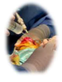- 関節を覆う膜を縫い縮めることで、 膝蓋骨が横方向に動くすき間をなくす。
