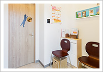 待合室待合室です。広い待合室にはいつも何匹かの犬・猫が飼い主さんと共に診察を待っています。 待っているあいだ、飼い主さん同士で自然と会話になることも。全く知らない方とでも会話がはずみます。